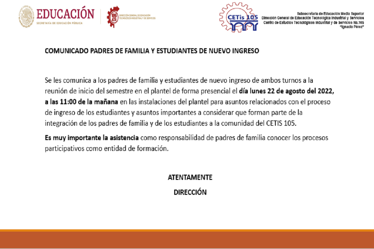 Comunicado Padres De Familia Y Alumnos Nuevo Ingreso