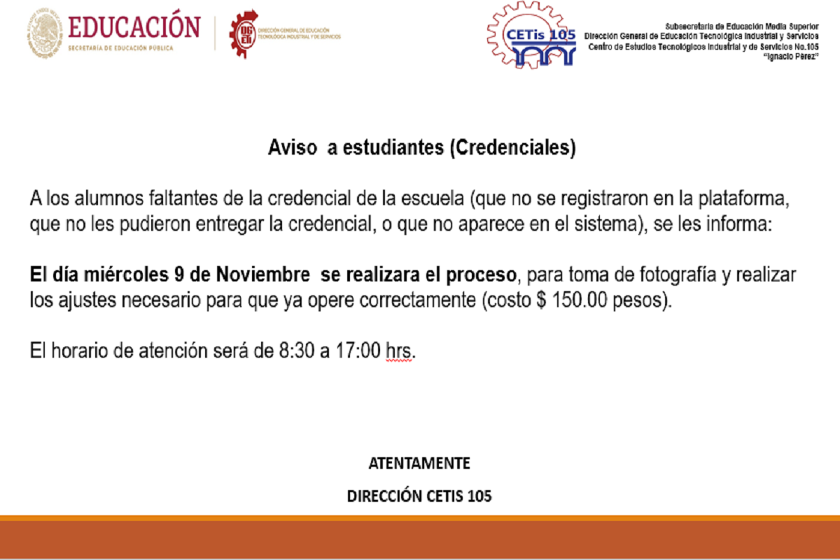 A los alumnos faltantes de la credencial de la escuela (que no se registraron en la plataforma, que no les pudieron entregar la credencial, o que no aparece en el sistema), se les informa: