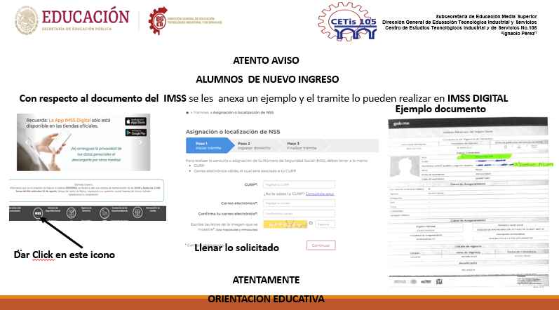 Con respecto al documento del IMSS se les anexa un ejemplo y el tramite lo pueden realizar en IMSS DIGITAL