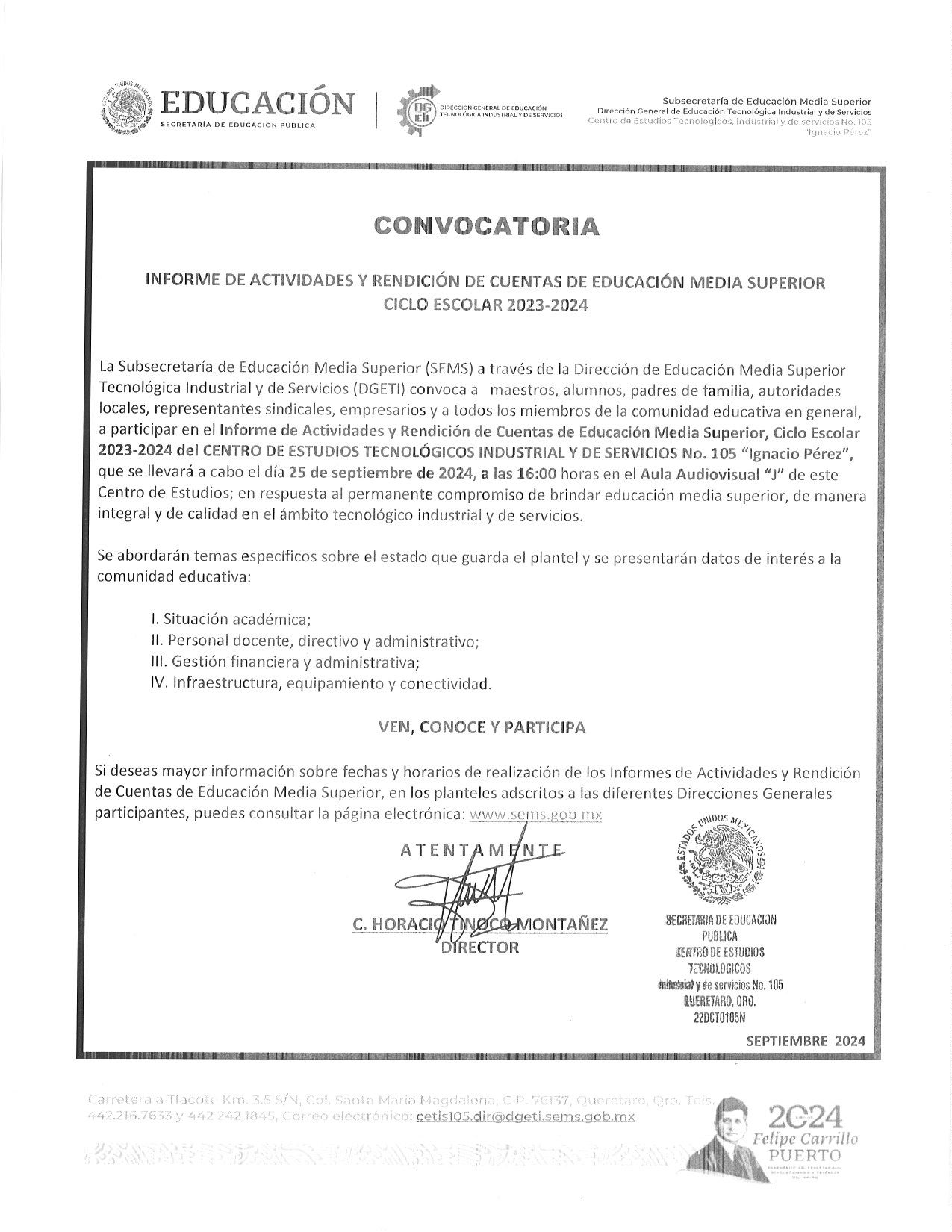 INFORME DE ACTIVIDADES Y RENDICIÓN DE CUENTAS DE EDUCACIÓN MEDIA SUPERIOR CICLO ESCOLAR 2023 - 2024